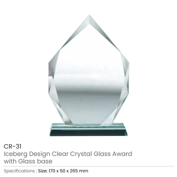 - Design: Elegant Iceberg Design Crystal Award with sturdy glass base